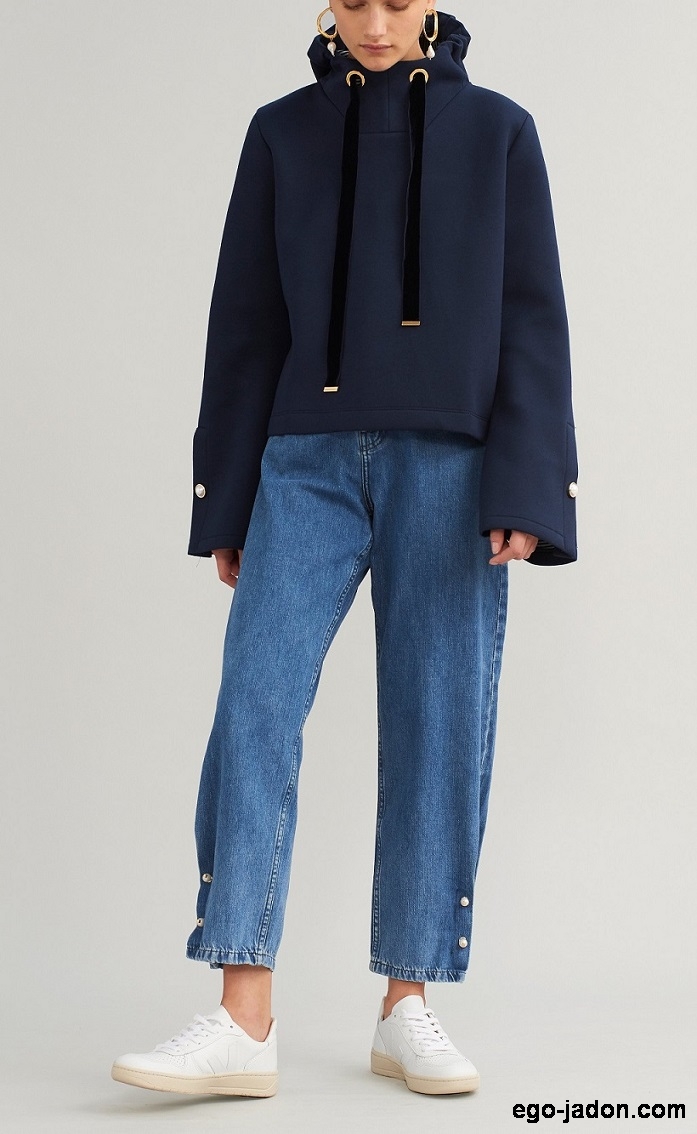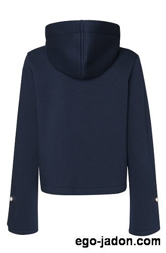Feature: gold eyelets with a velvet ribbon tie. There are gold popper details on the sleeves